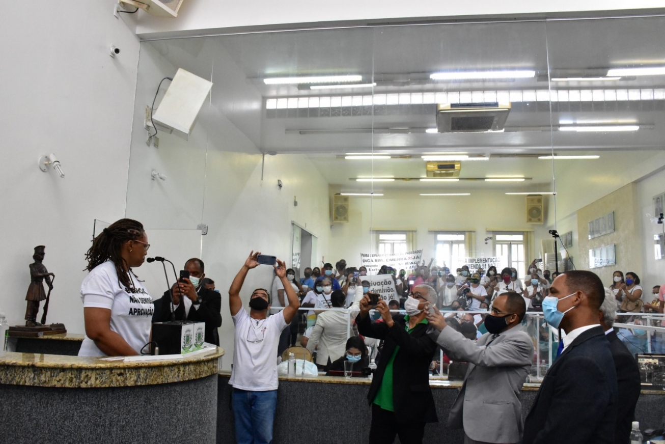 Trabalhadores da saúde realizam manifestação na Câmara de de Feira